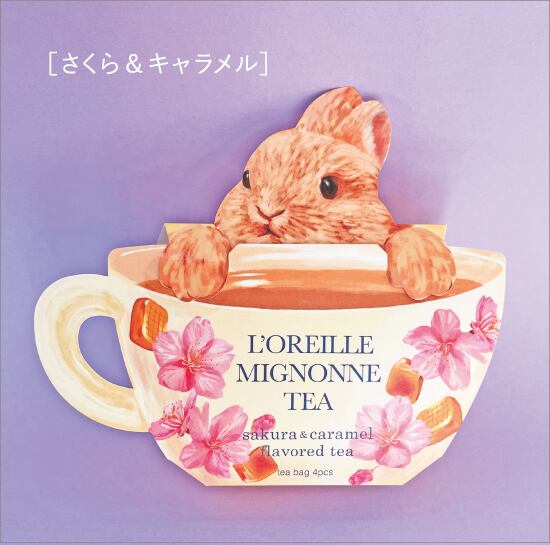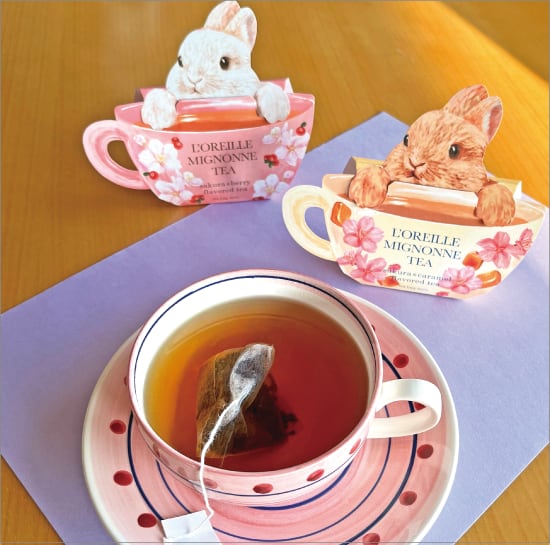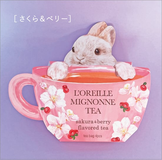 フランス語で「ロレイユ」は耳、「ミニョン」は可愛いという意味。その名のとおり愛らしいパッケージの中には、ティーバッグが4包入っています。「さくら&ベリー」と「さくら&キャラメル」、2つのフレーバーからお好きな香りをお選びください。