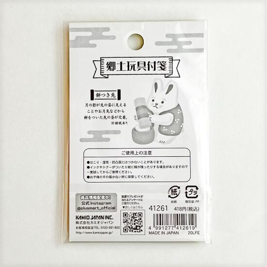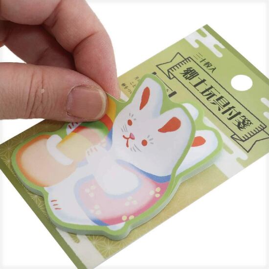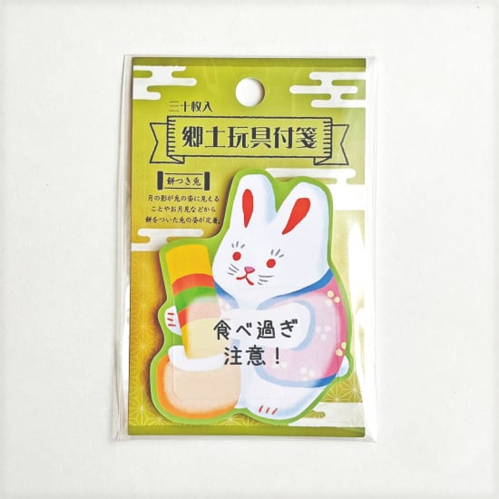 一生懸命お餅をつく姿がいじらしい、郷土玩具の「餅つき兎」をかたどった可愛い付箋。眺めるだけで心が和みます。プレゼントにひと言メッセージを添えたり、文字を書かずに栞やシールとして使っても。